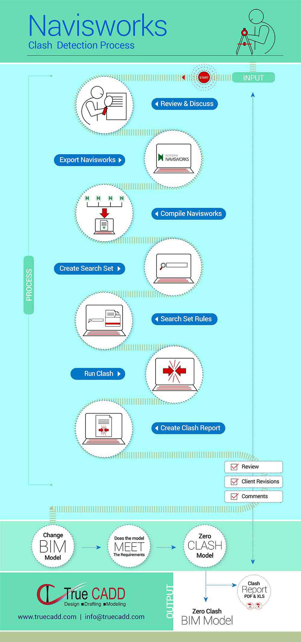 Navisworks clash detection and clash resolution ensures maximum compatibility between various architectural, structural, MEP models in a project.
