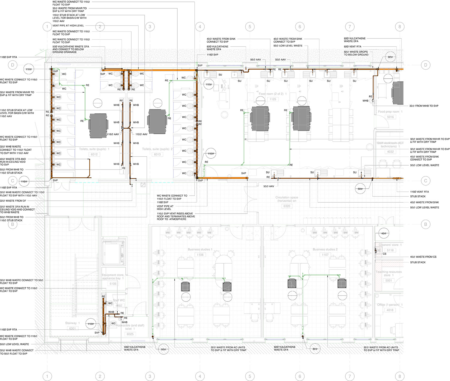 We provide detailed schematics for heating as well as cooling systems including plant room layout, and other HVAC systems.